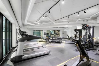 salle d'entraînement entièrement équipée, une piscine, une